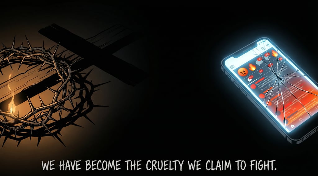 It starts with recognizing that we have outsourced our moral judgment to the algorithm. That the people running the troll farms and the disinformation networks — on all sides of this divide — are counting on us to keep scourging each other so we don't look up long enough to ask who built the cross.