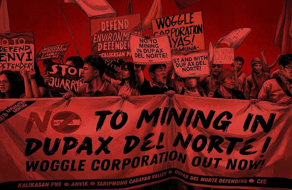 Environmental groups have been protesting at the DENR central office in Quezon City since January 23, 2026, demanding the agency revoke Woggle's permit and halt all mining activities. Kabataan Partylist Rep. Raoul Manuel and other lawmakers have called on DENR to immediately revoke the exploration permit. The DENR has not responded.